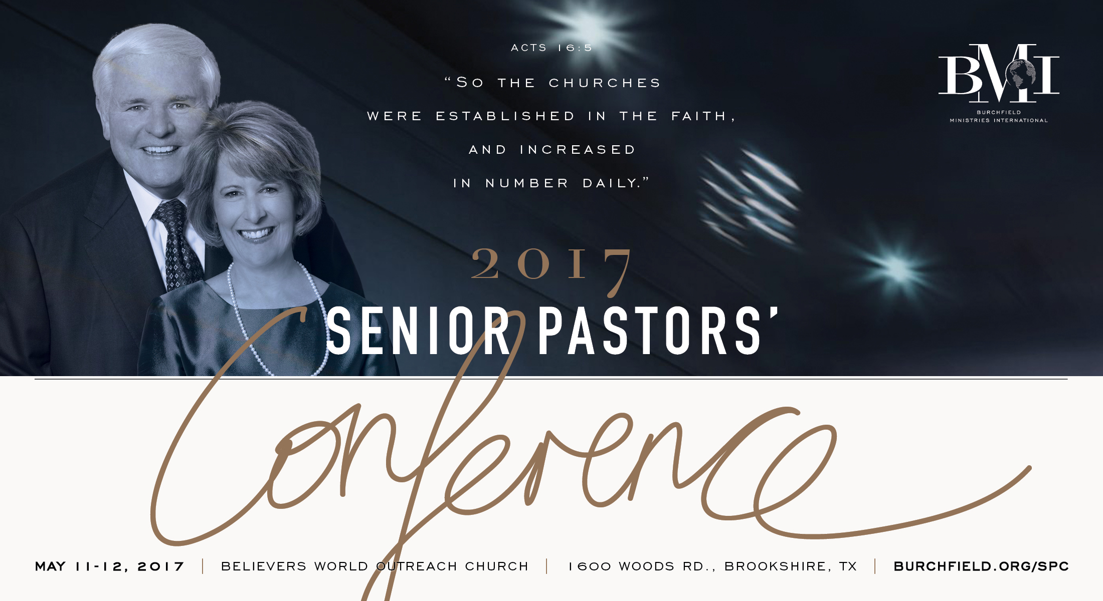 Conference announcement mailer for a family run, Texas based Christian ministry.