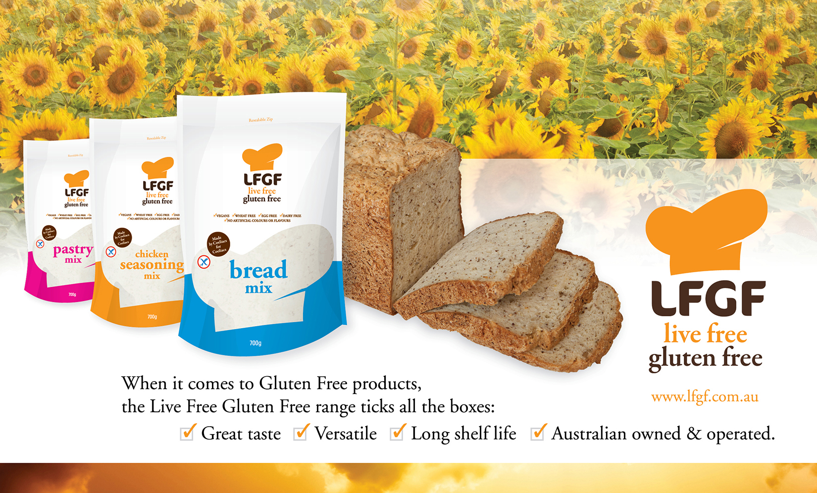 Chris conceived a corporate identity and produced all creative for this delicious and versatile range of gluten free mixes in order to edge its way into the marketplace as a serious player.