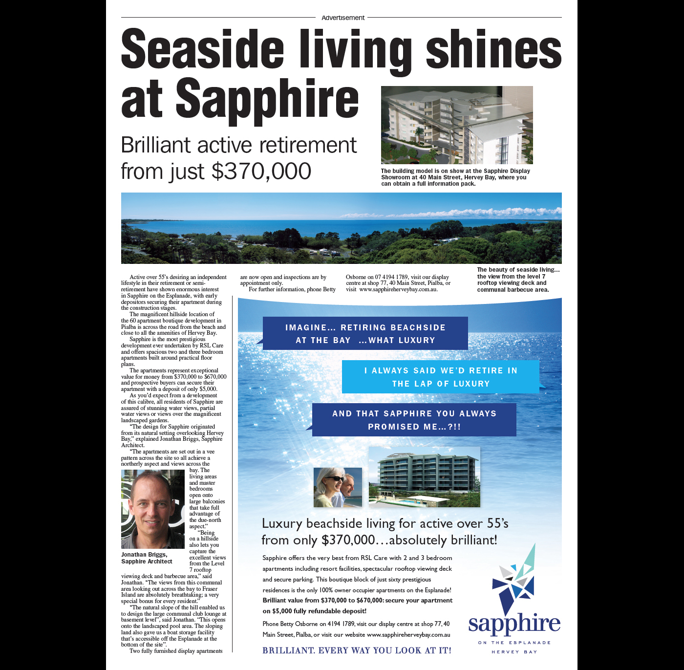 The main sales brochure (cover and first inside spread above) capture the beauty of the area and the luxury laid back lifestyle
